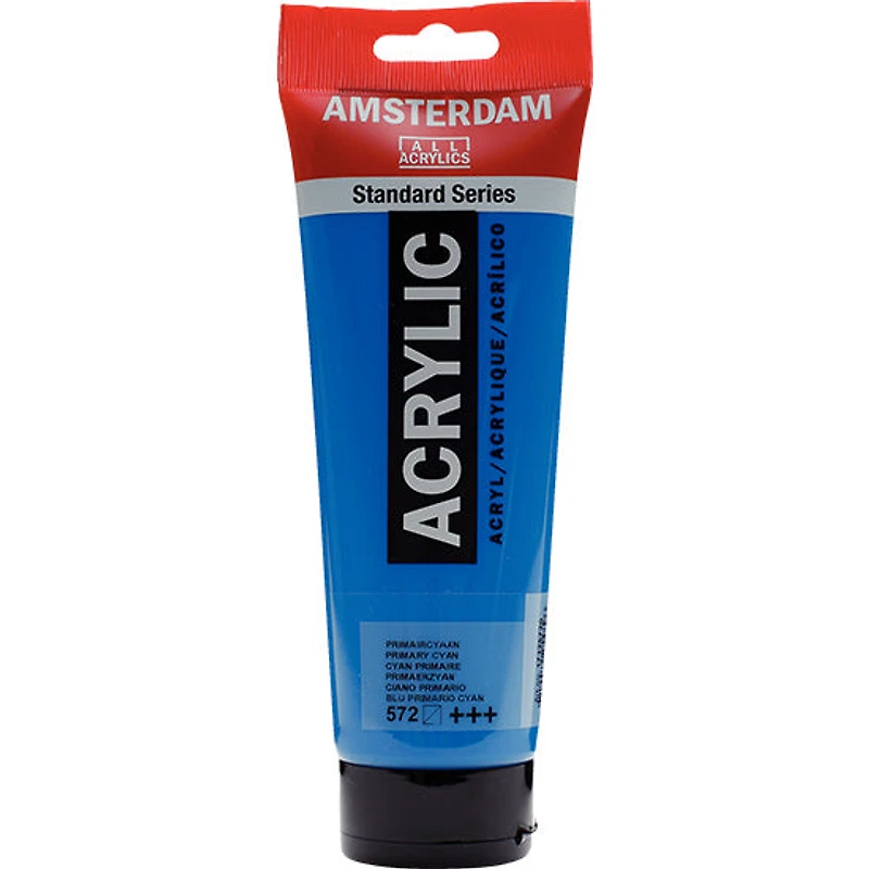 Amsterdam Standard Series Acrylics come in a wide selection of pure, brilliant colours, skillfully made with 100% acrylic emulsion and high-quality pigments. Offering excellent lightfastness and multiple opacities, Amsterdam Acrylics adhere well to canvas and walls, as well as to many other non-greasy surfaces: paper, cardboard, wood, plywood, concrete, chipboard, plaster, etc. Special metallic, pearlescent and reflex colours complete the balanced palette of this medium viscosity paint. Plus, they're an eco-friendly choice. Containers are made of plastic and are entirely recyclable. None of the pigments contain heavy metals. Discover the endless creative possibilities of Amsterdam Acrylics!