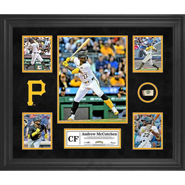 Andrew McCutchen - Collage encadré de 5 photos des Pirates de Pittsburgh avec un morceau de ballon utilisé lors du match