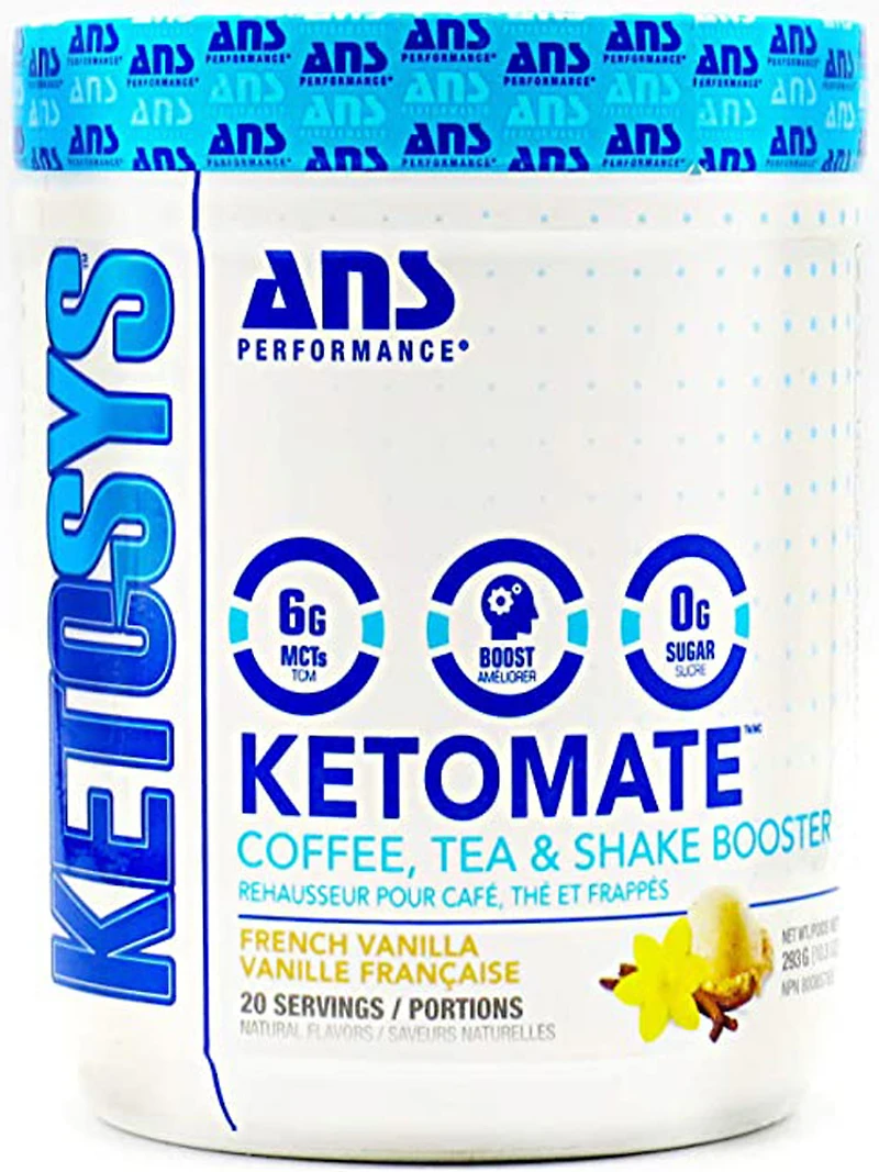 Improve mental focus while enjoying your morning coffeeBoost your beverages for amazing mental performanceZero sugar coffee creamer made with coconut oil, MCTs and nootropicsMixes easy, tastes delicious and improves cognitive performanceDescriptionANS Performance - Ketomate Creamer - French Vanilla - 293 293 gr Gram(s) - NPN: 80085765 -- Ketomate is a versatile zero sugar creamer designed to give your favorite beverage an incredible flavor experience, and a boost in mental energy and performance. It's the perfect way to indulge in a tasty and healthy treat while following a low carb or ketogenic diet. Boost your beverages for amazing mental performanceZero sugar coffee creamer made with coconut oil, MCTs and nootropicsMixes easy, tastes delicious and improves cognitive performance.INGREDIENTSCoconut Oil powder (Coconut Oil, Soluble Corn Fiber, Sodium Caseinate, Sunflower Lecithin, Silicon dioxide), Natural Flavor, Medium Chain Triglyceride (MCT) Oil powder, Sucralose, Stevia (leaf) extract.
