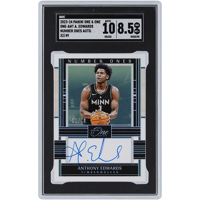 Anthony Edwards Minnesota Timberwolves Autographié 2023-24 Panini One & One Numéro Un Autographe #ONE-ANT #32/49 SGC Authentifié 8.5/10 Carte