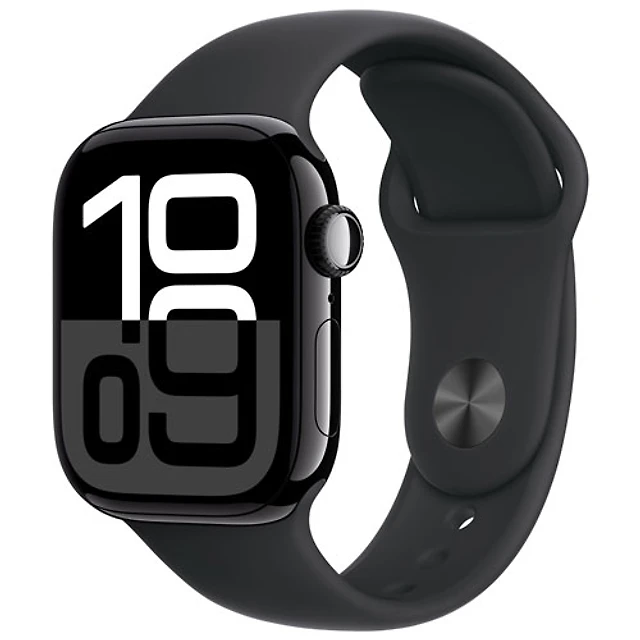TELUS Apple Watch Series 10 (GPS + Cellular) 42mm Jet Black Aluminum Case w/Black Sport Band -S/M- Monthly Financing