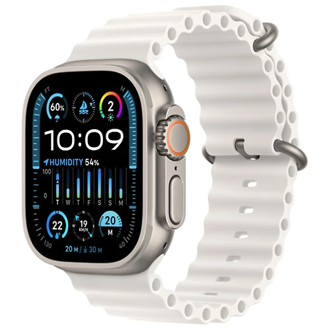 Apple Watch Ultra 2 (GPS + Cellular) avec boîtier de 49 mm en titane et bracelet Océan blanc par TELUS - Financement mensuel