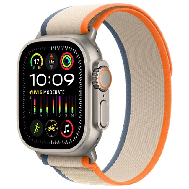 Apple Watch Ultra 2 (GPS + Cellular) avec boîtier de 49 mm en titane et bracelet Sentier orange/beige par TELUS - Moyen/Grand - Financement mensuel