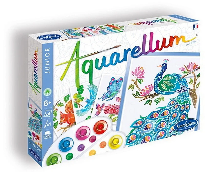With a few drops of paint, children can create true masterpieces! Aquarellum Junior is an innovative method that consists of painting on embossed picture cards. The paint penetrates the cavities to make pictures appear like magic?–?a technique that allows for great precision. Plus, since the paint only adheres to masked areas, it’s super easy to paint within the lines! Illustrations come on a high-quality, thick vellum paper that is perfect for watercolour painting, as it will not crinkle. A great creative activity to initiate children to the art of painting and mixing colours. Little artists of all levels will be proud of their results! Ages 7 and up.An eco-friendly product. Manufactured in France, Aquarellum Junior was designed using eco-friendly methods, so that all ages can have fun, while respecting the environment and future generations. Includes:
