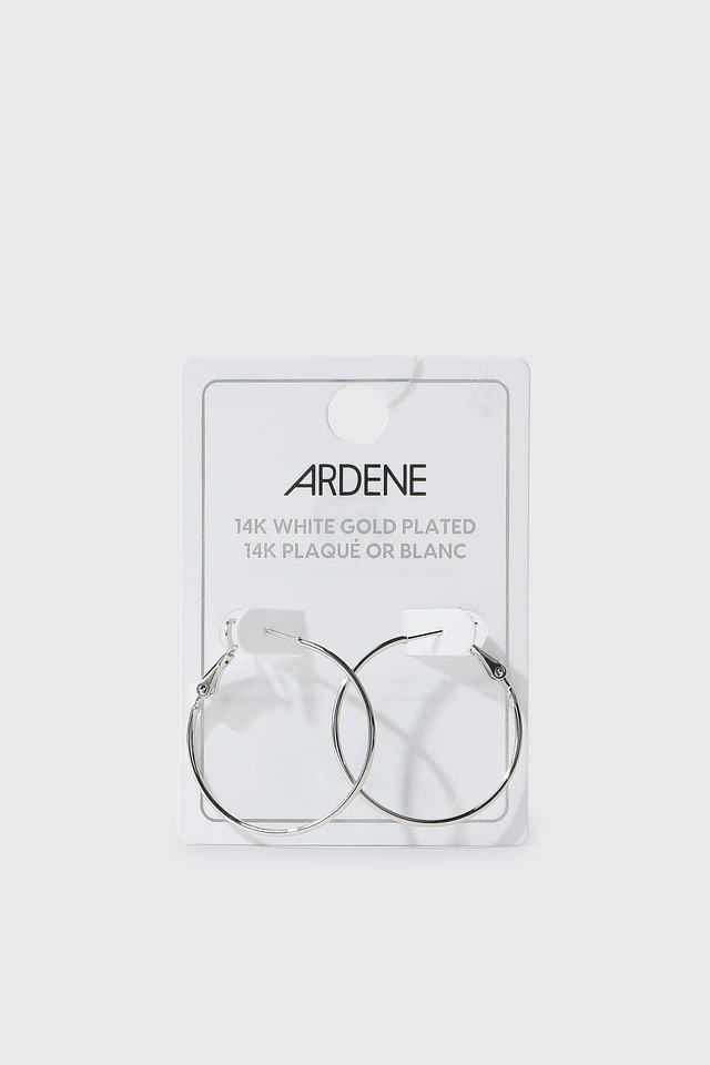 Ardene 14K White Gold Plated Hoop Earrings in Silver | Stainless Steel