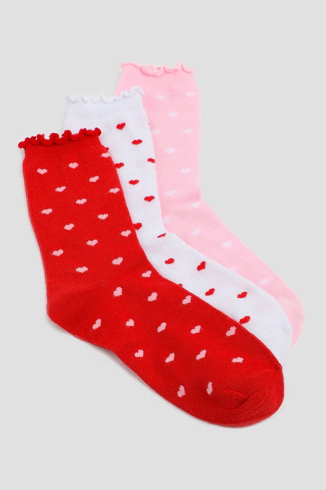 Ardene 3-Pack Heart Crew Socks in Red | Polyester/Spandex