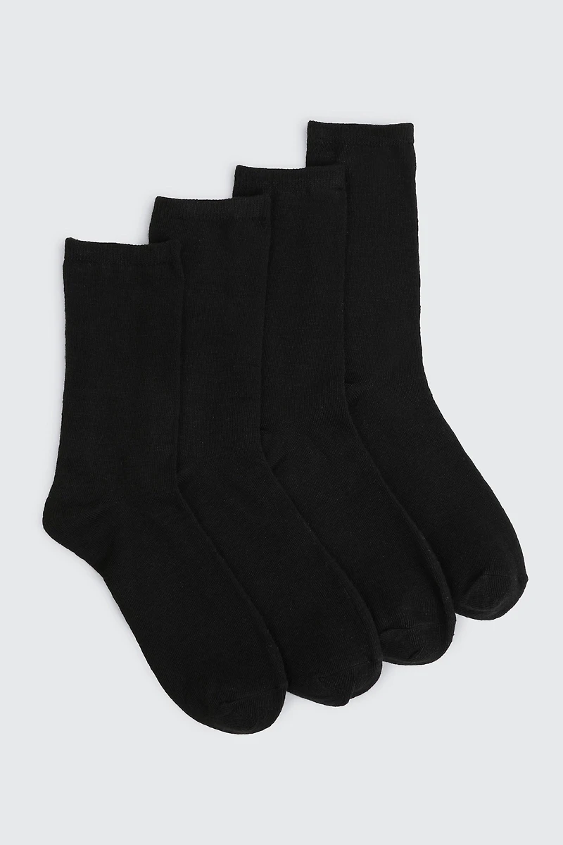Pack of 4 pairs of classic crew socks. Size 5-998% polyester, 2% elastane | Ardene 4-Pack Solid Crew Socks in Black | Size 28 | Polyester/Elastane