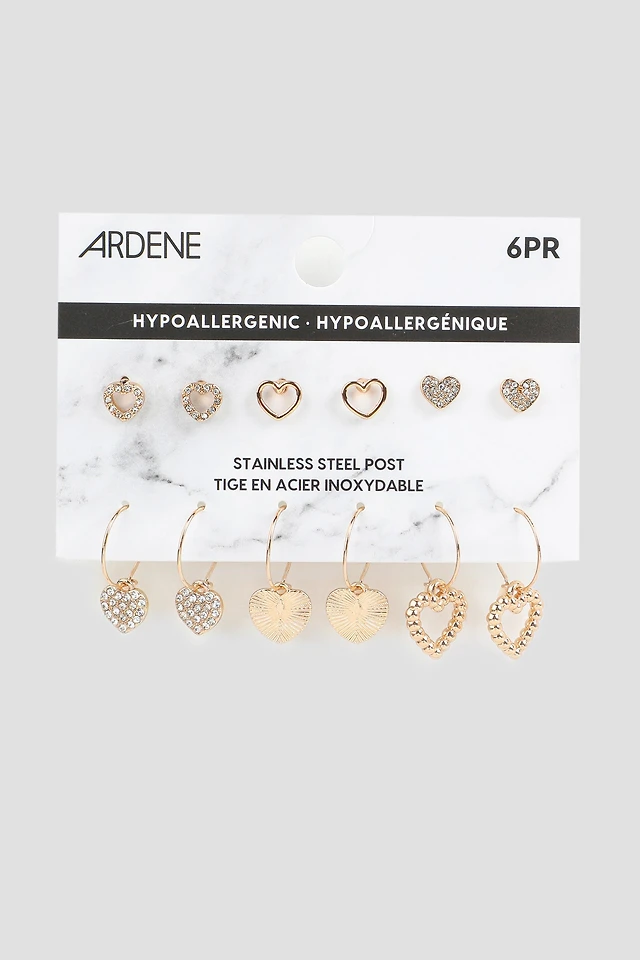 Ardene 6-Pack Heart Earrings in Gold | Stainless Steel