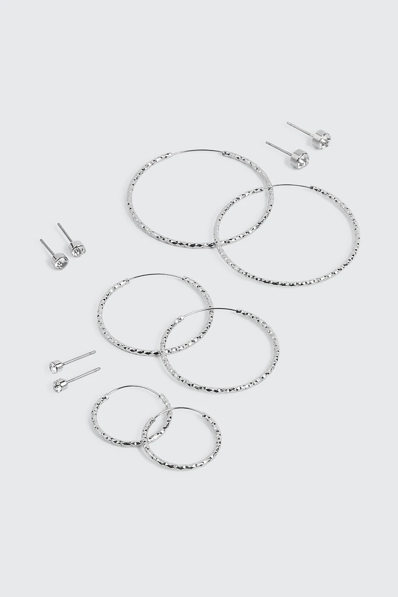 Ardene 6-Pack of Hoop and Embellished Stud Earrings in Silver | Stainless Steel
