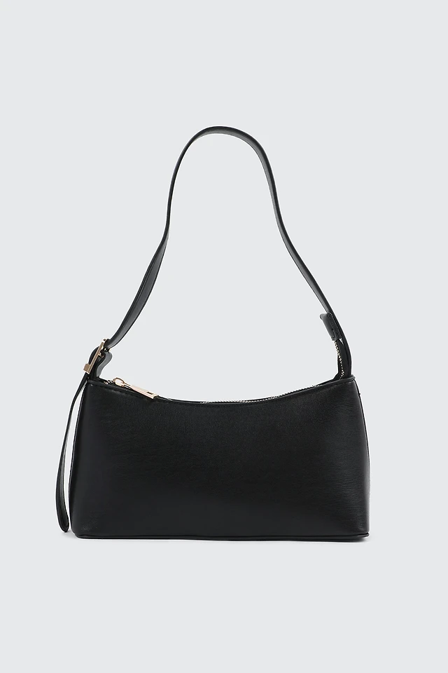 Ardene Faux Leather Baguette Bag with Adjustable Strap in Black | 100% Recycled Polyester/Faux Leather | Eco-Conscious