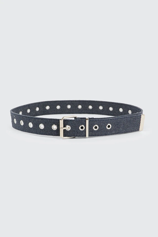Ardene Canvas Eyelet Belt in Dark Blue | Size Small | Polyester