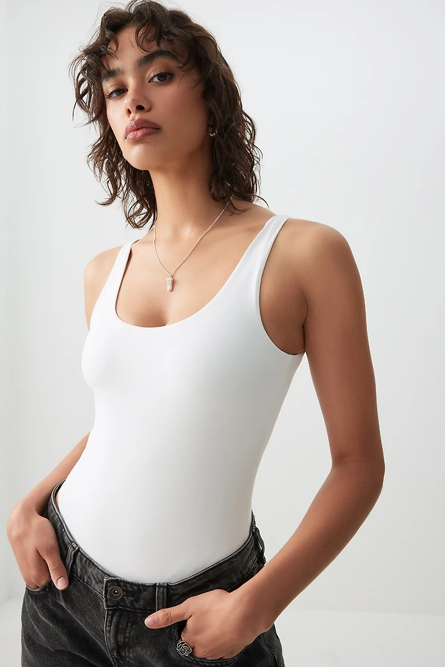 Ardene Contour Scoop Neck Bodysuit in White | Size | Elastane/Polyamide