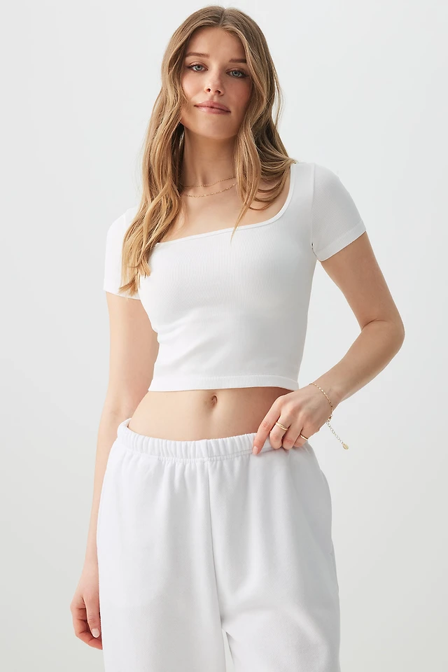 Ardene Crop Seamless Square Neck T-Shirt in Coconut Bliss | Size | Nylon/Spandex | Eco-Conscious