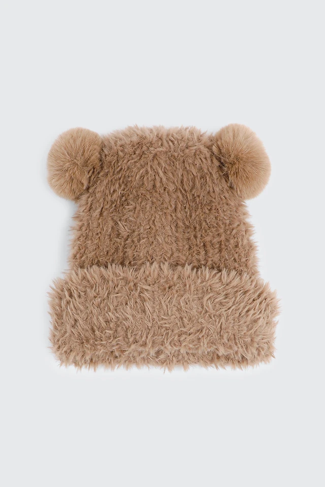 Ardene Faux Fur Beanie with Bear Ears in Brown | Polyester