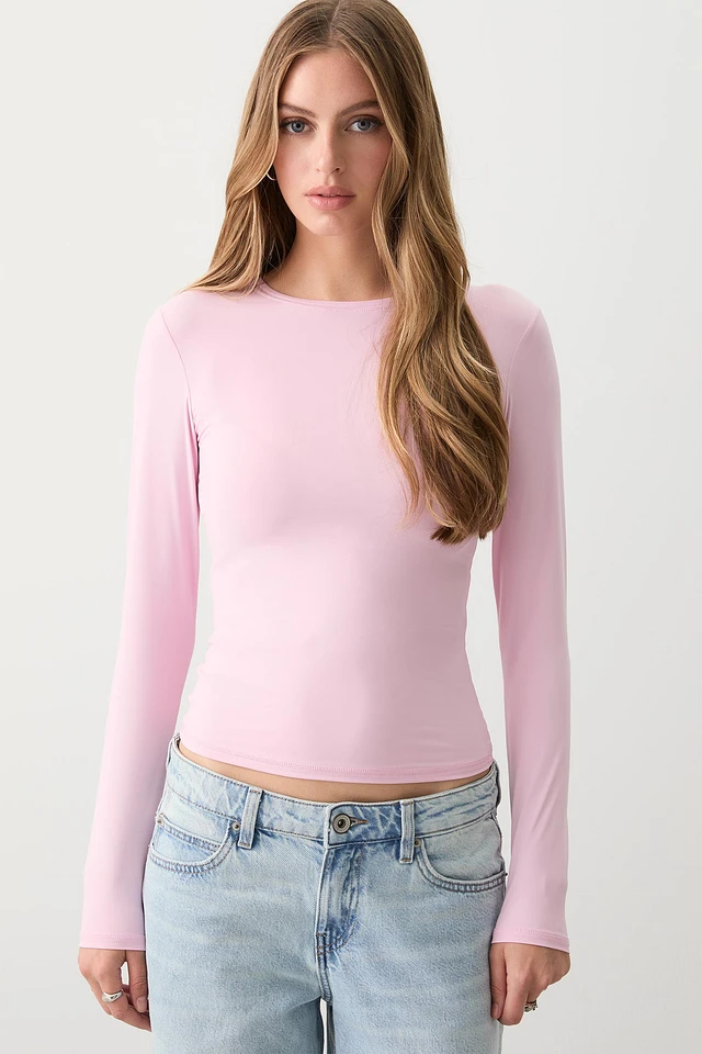 Ardene Fine Jersey Fitted Long Sleeve T-Shirt in Light Pink | Size | Elastane/Polyamide
