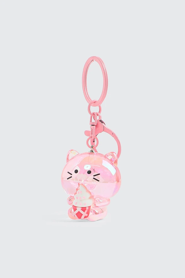 Ardene Kids Cat Ice Cream Keychain in Light Pink