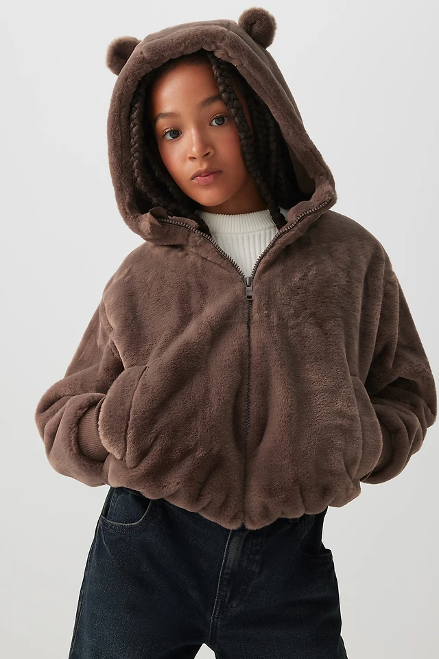 Ardene Kids Faux Fur Teddy Bear Jacket in Brown | Size | Polyester