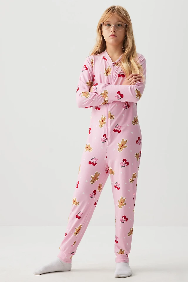 Ardene Kids HUSHKNIT Zipper Onesie in Light Pink | Size Large | Polyester/Elastane | Eco-Conscious