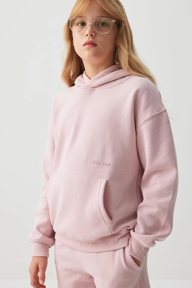 Ardene Kids Solid Hoodie in Light Pink | Size Small | Polyester/Cotton | Fleece-Lined