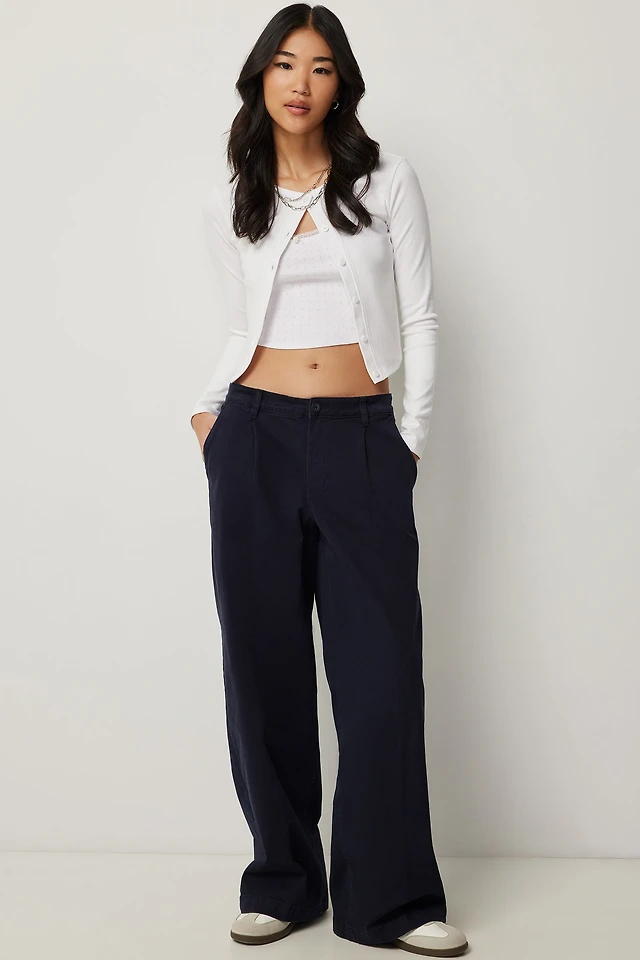 Ardene Low Rise Pleated Chinos in Dark Blue | Size | Spandex/Cotton | Eco-Conscious