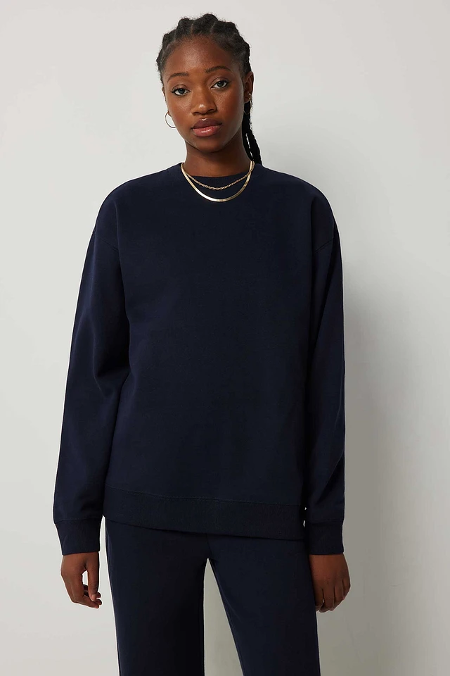 Ardene Solid Crew Neck Sweatshirt in Dark Blue | Size | Polyester/Cotton | Eco-Conscious