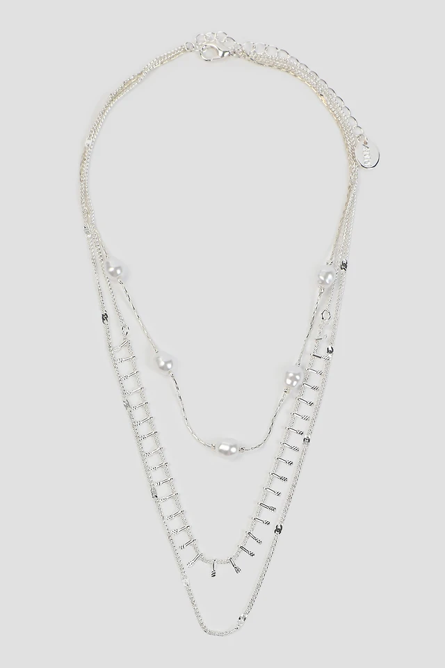 Ardene Three-Row Pearl Necklace in Silver