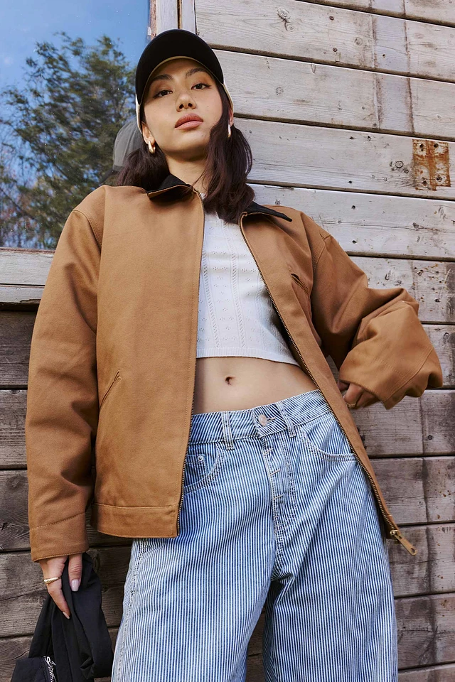 Ardene Work Jacket With Corduroy Collar in Cognac | Size | 100% Cotton/Polyester