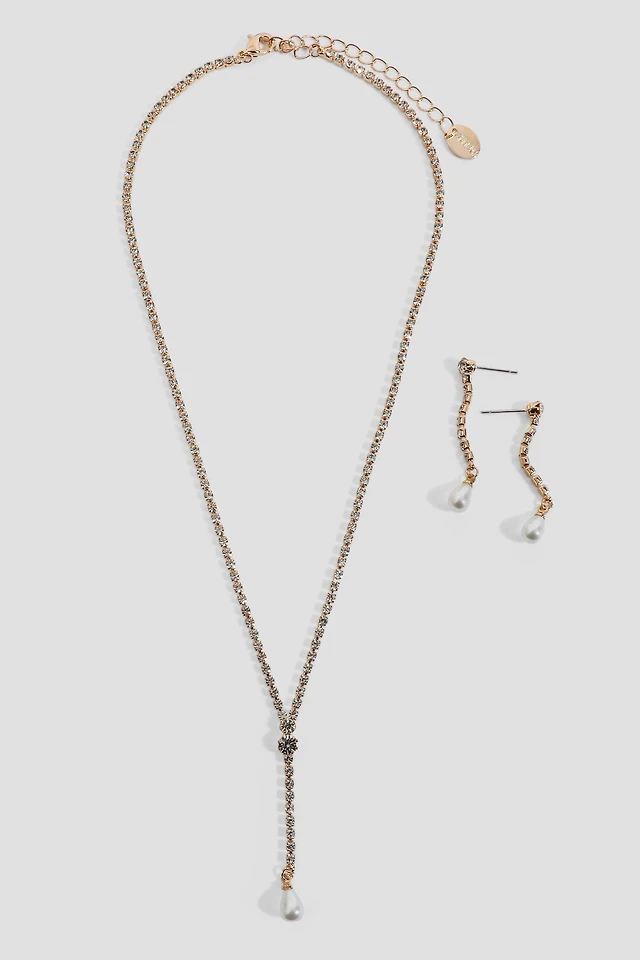 Ardene Y Shape Necklace and Earrings Set in Gold | Stainless Steel