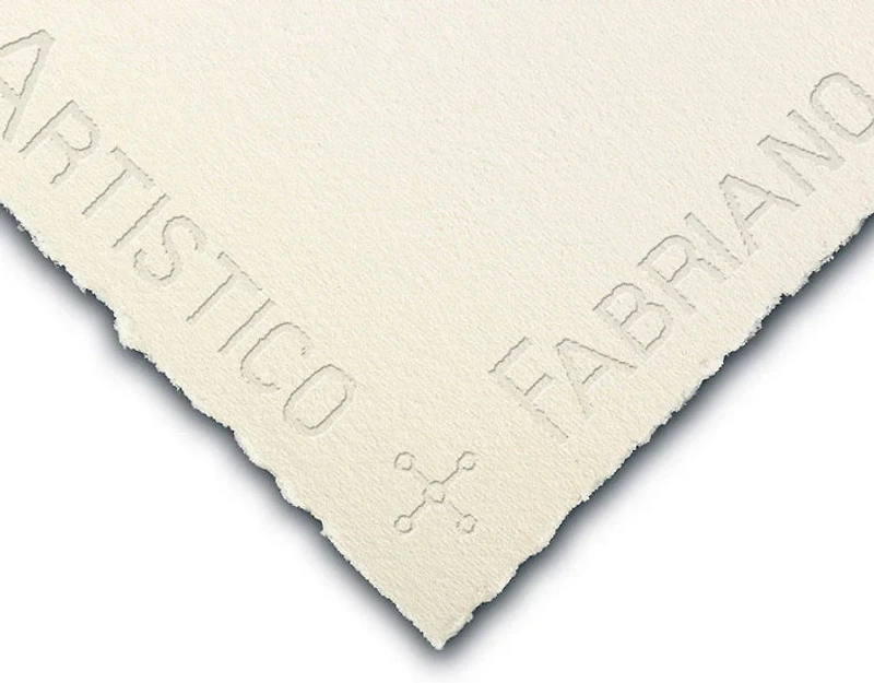 Fabriano Artistico Extra White Watercolour Paper is mould-made with 100% cotton fibres, guaranteeing long conservation and inalterability over time. Ideal for watercolour, tempera, gouache, acrylic, ink, charcoal, graphite, drawing and printmaking 300 lb Bright white without optical bleaching 100% cotton Double-sized Acid-free/neutral pH Chlorine-free Four deckle edges and a watermark