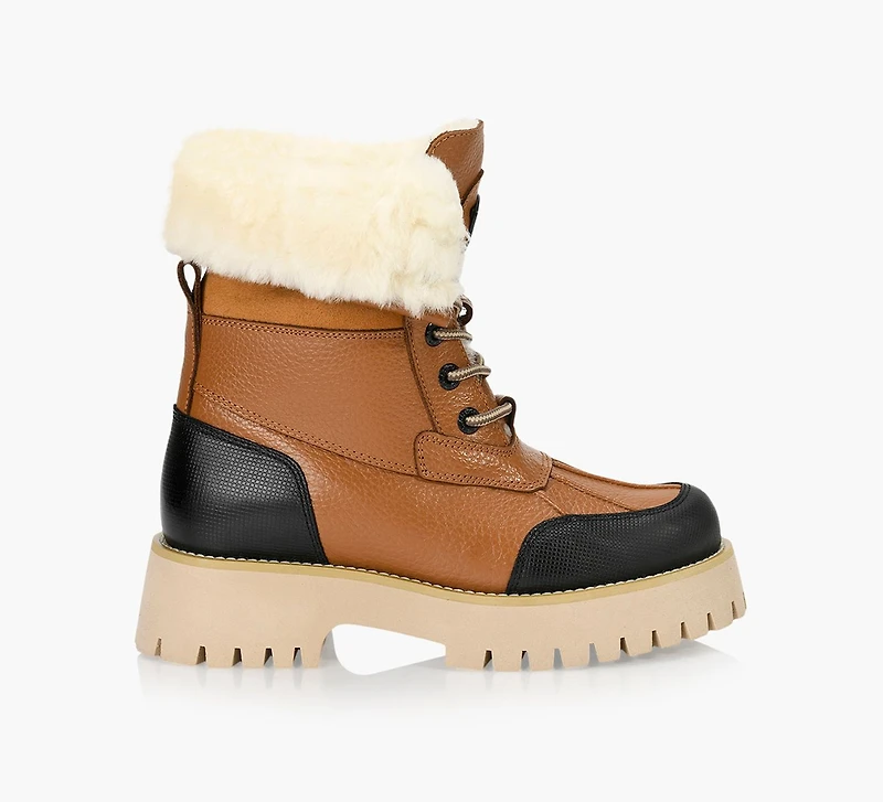 The Pajar Ashley is a chic and functional winter boot designed to keep your feet warm and dry in the harshest conditions. Made from high-quality leather and suede, this boot features a wool lining for added warmth and comfort. The waterproof construction ensures that your feet stay dry, while the rubber sole provides excellent traction on slippery surfaces. With a heel height of 50mm and a platform height of 35mm, this boot combines fashion and functionality, making it perfect for winter outings.