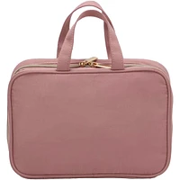 A compact and portable weekender with a carry handle made easy for travel. This small weekender has brush holder elastic loops for makeup brushes, and a stain resistant PVC clear compartment to fit and find your essentials quickly.