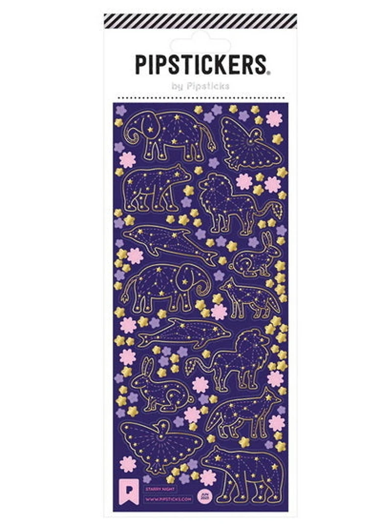 Feuille d'autocollants uniques en PVC, rehaussés de touches holographiques dorées.