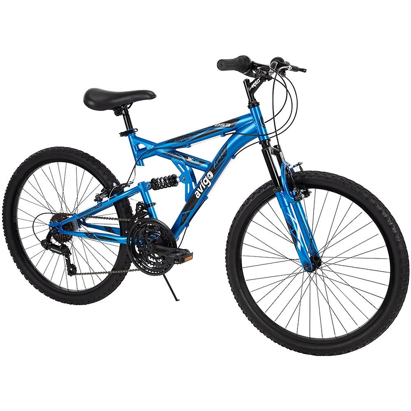 R Exclusive, only available at Toys R Us Canada. Explore the outside wild with the Avigo Ultrax 24-inch Mountain Bike, matte blue with black accents. This dual suspension, steel frame is ready for a variety of wheeled adventures.