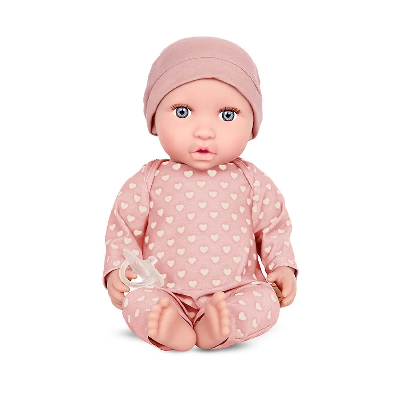 Babi Baby Doll - Gray-Blue Eyes and Pink Hat 14-inch Baby Doll with Pink PJs