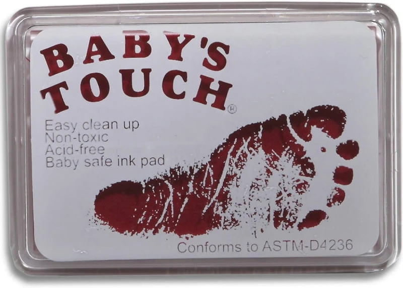 Ink for baby feet, non-toxic, easy to clean, acid-free and conforms to ASTM-D4236 standard. Dimensions stamp:  2 ¼ " X 3 ½ " Detailed instruction booklet included.  Colours: pink, blue.