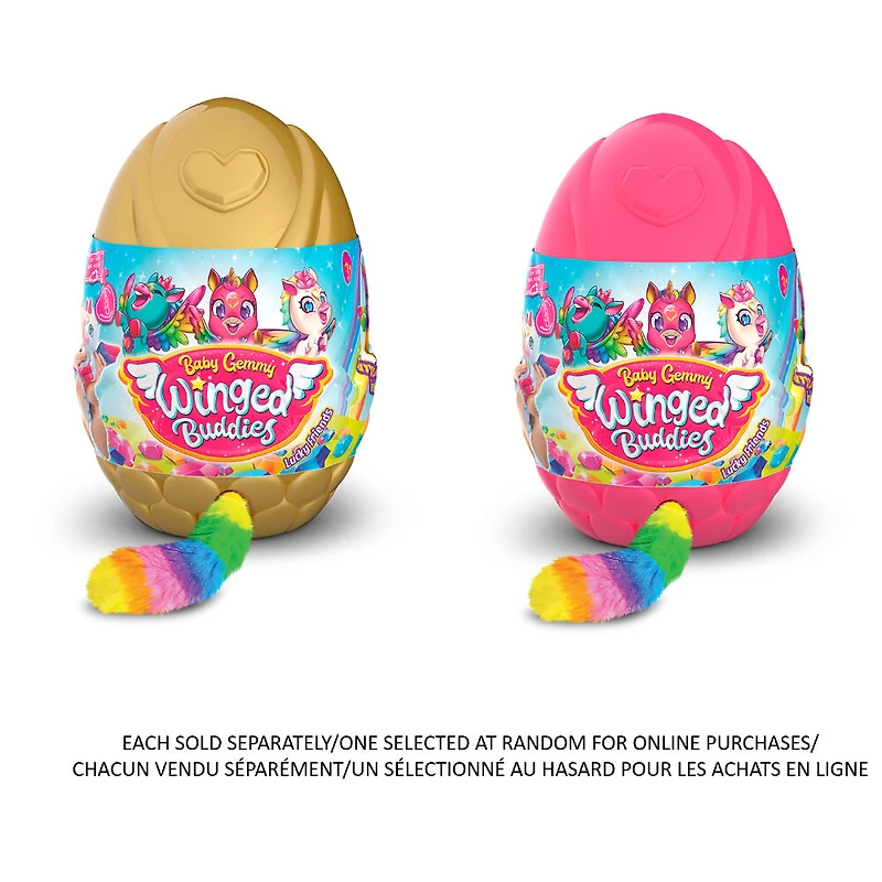 Baby Gemmy Winged Buddies Unicorns are a girl's best and fiercest friend! These adorable, fantasy surprises come in magical crystal eggs. Once you open the egg, you'll see that these soft and cuddly unicorns come in many different colours wings and each has a unique good luck gem fixed on their chest. You can also take your good luck charm unicorn everywhere in its cute and portable egg. Can you guess which unicorn you'll get?