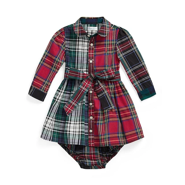 Baby Girl's Plaid Shirt Dress & Bloomers 2-Piece Set