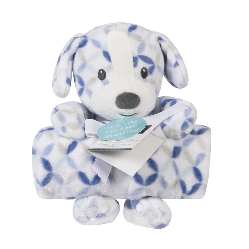 This two-piece blanket and plush toy set are all your little one needs to feel warm, cozy and comforted. The blanket is made of an ultra-soft material that is durable and machine washable. The plush toy makes amusing noises that are sure keep your little one entertained all day long, making it the perfect companion!