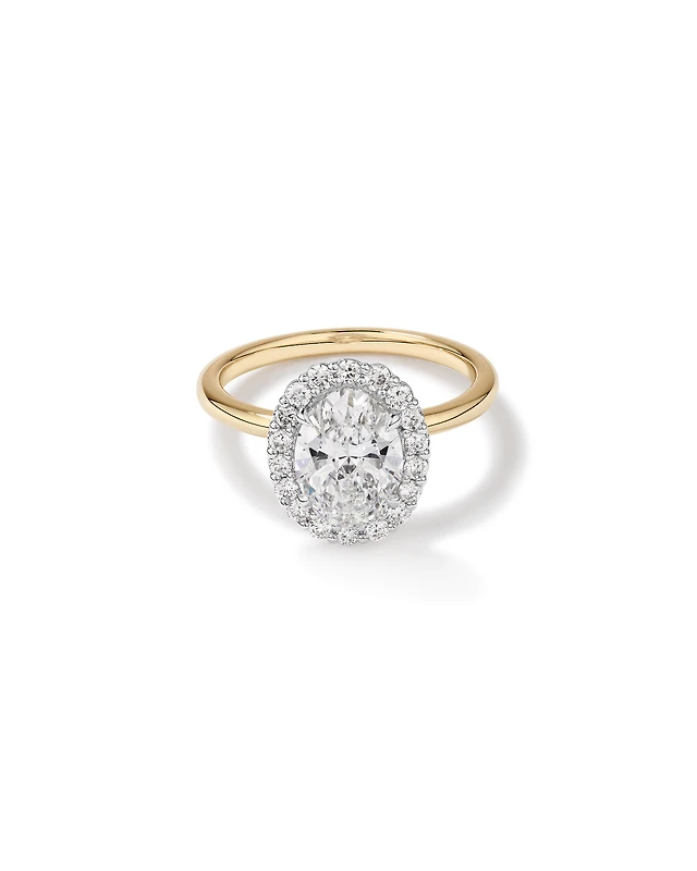 Bague De Fiançailles Halo En Diamant Laboratoire Taille Ovale 2,34 Carats Poids Total Or Jaune Et Blanc 14