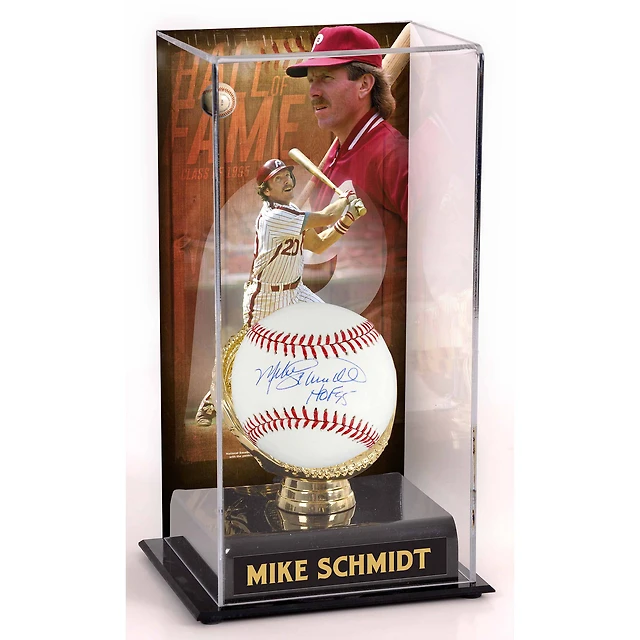 Balle de baseball autographiée par Mike Schmidt des Philadelphia Phillies avec inscription « HOF 95 » et vitrine d'exposition sublimée du Temple de la renommée