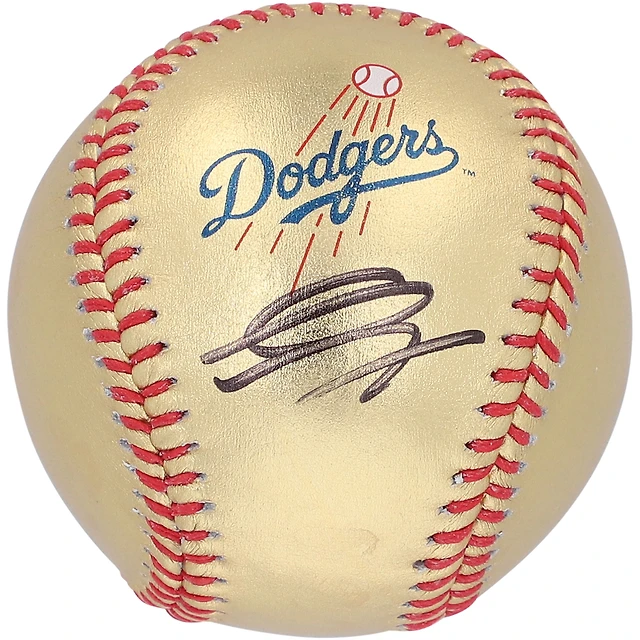 Balle de baseball en cuir doré autographiée par Gavin Lux des Dodgers de Los Angeles