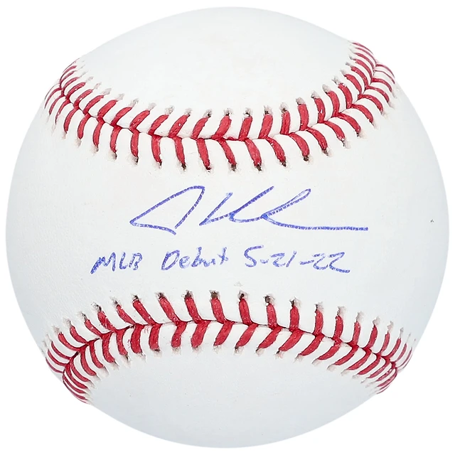 Ballon de baseball autographié par Adley Rutschman des Orioles de Baltimore avec l'inscription « MLB Debut 5-21-22 »