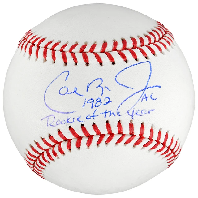 Ballon de baseball autographié par Cal Ripken Jr. avec l'inscription « Rookie of the Year 1982 »