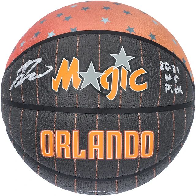 Ballon de basket-ball de collection Wilson City Edition autographié par Jalen Suggs Orlando Magic avec inscription « 2021 #5 Pick »