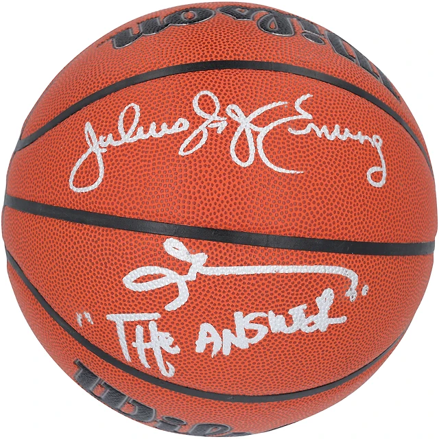 Ballon de basket-ball d'intérieur/extérieur Wilson Authentic Series dédicacé par Allen Iverson et Julius « Dr. J » Erving des Philadelphia 76ers avec inscription « The Answer »
