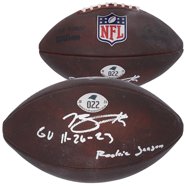Ballon de football américain dédicacé par Bryce Young, Carolina Panthers, lors du match contre les Tennessee Titans le 26 novembre 2023, avec plusieurs inscriptions - n° 22