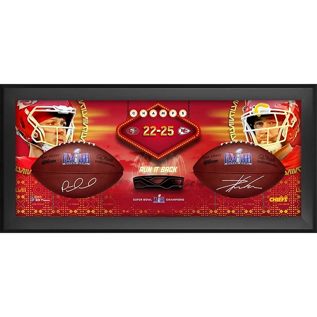 Ballon de football Duke Two Shadowbox dédicacé par Patrick Mahomes et Travis Kelce des Kansas City Chiefs, champions du Super Bowl LVIII