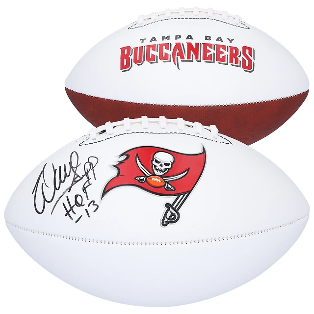 Ballon de football Franklin White Panel autographié par Warren Sapp des Tampa Bay Buccaneers avec l'inscription « HOF 13 »