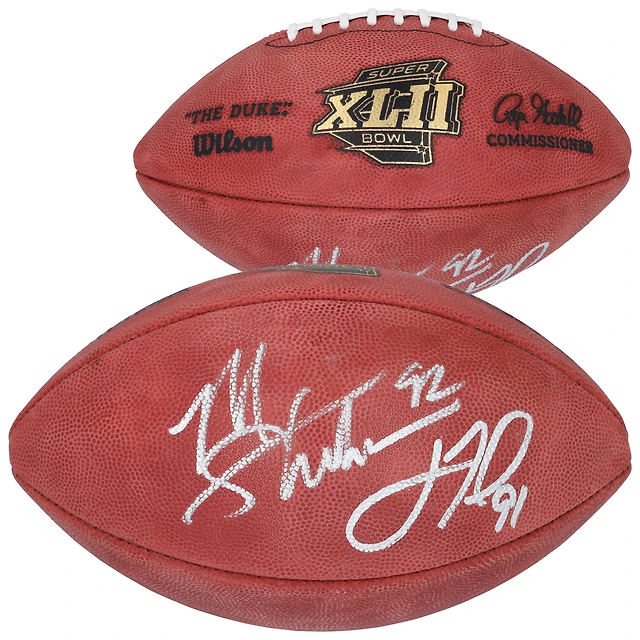 Ballon de football Wilson Super Bowl XLII autographié par Michael Strahan et Justin Tuck des New York Giants