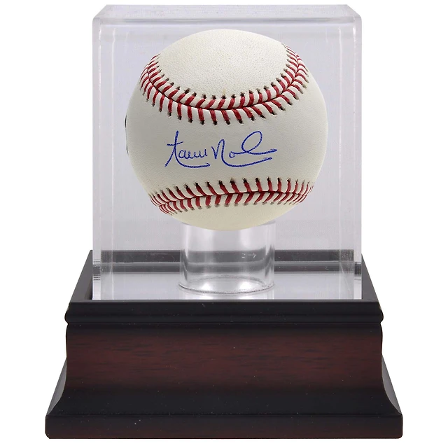 Baseball autographié par Aaron Nola des Philadelphia Phillies et vitrine de présentation de baseball en acajou